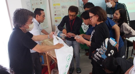 分別の種類も多く、日本語を勉強中の生徒さんにとっては、説明を聞くだけでは分別の仕方をしっかり理解するのは難しいと思いますが、この日は環境課のみなさんが持ってきてくれたごみのサンプルを使い、実際を分別して学ぶことができました。